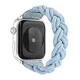 Geflochtenes Armband Nylon Ersatzband Sport Armbänder Kompatibel mit Apple Watch Series 7 6 5 4 3 SE,Dehnbar Solo Loop Uhrenarmband für iWatch 44mm 40mm 38mm 42mm 41mm 45mm,Himmelblau-MAls Amazon-Partner verdiene ich an qualifizierten Käufen.