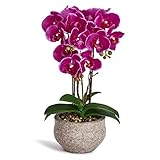 - Die strahlenden und lebhaft aussehenden sternförmigen Blüten unserer lila Phalaenopsis-Orchidee bilden eine Mischung aus Eleganz und Charme in jedem Raum, sei es in Ihrem Wohnzimmer, Büro, aber auch Badezimmer oder in Ihrer Küche.